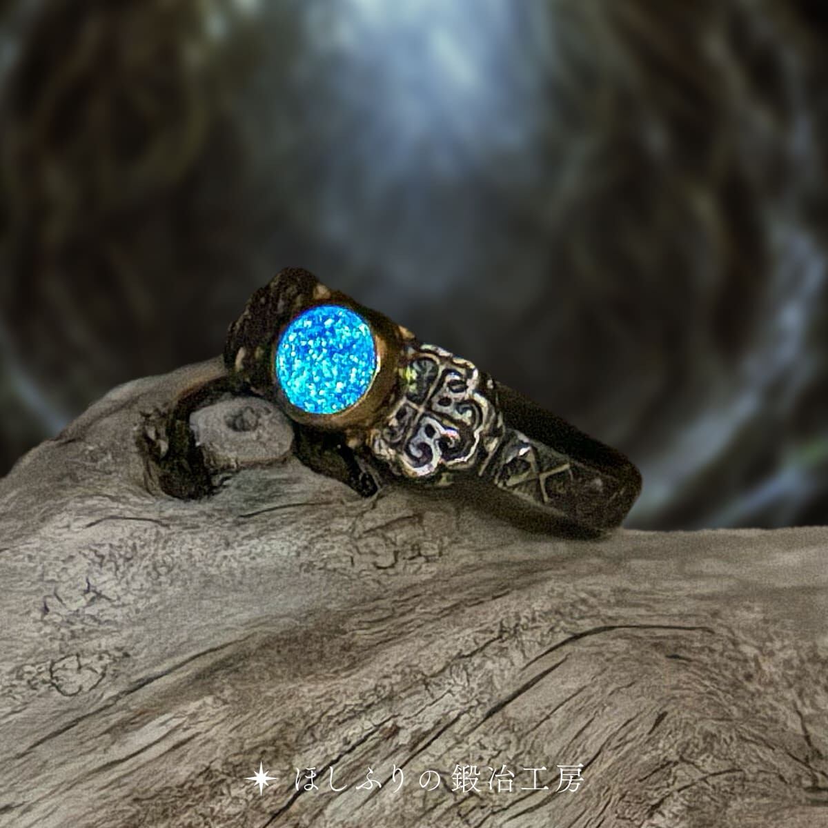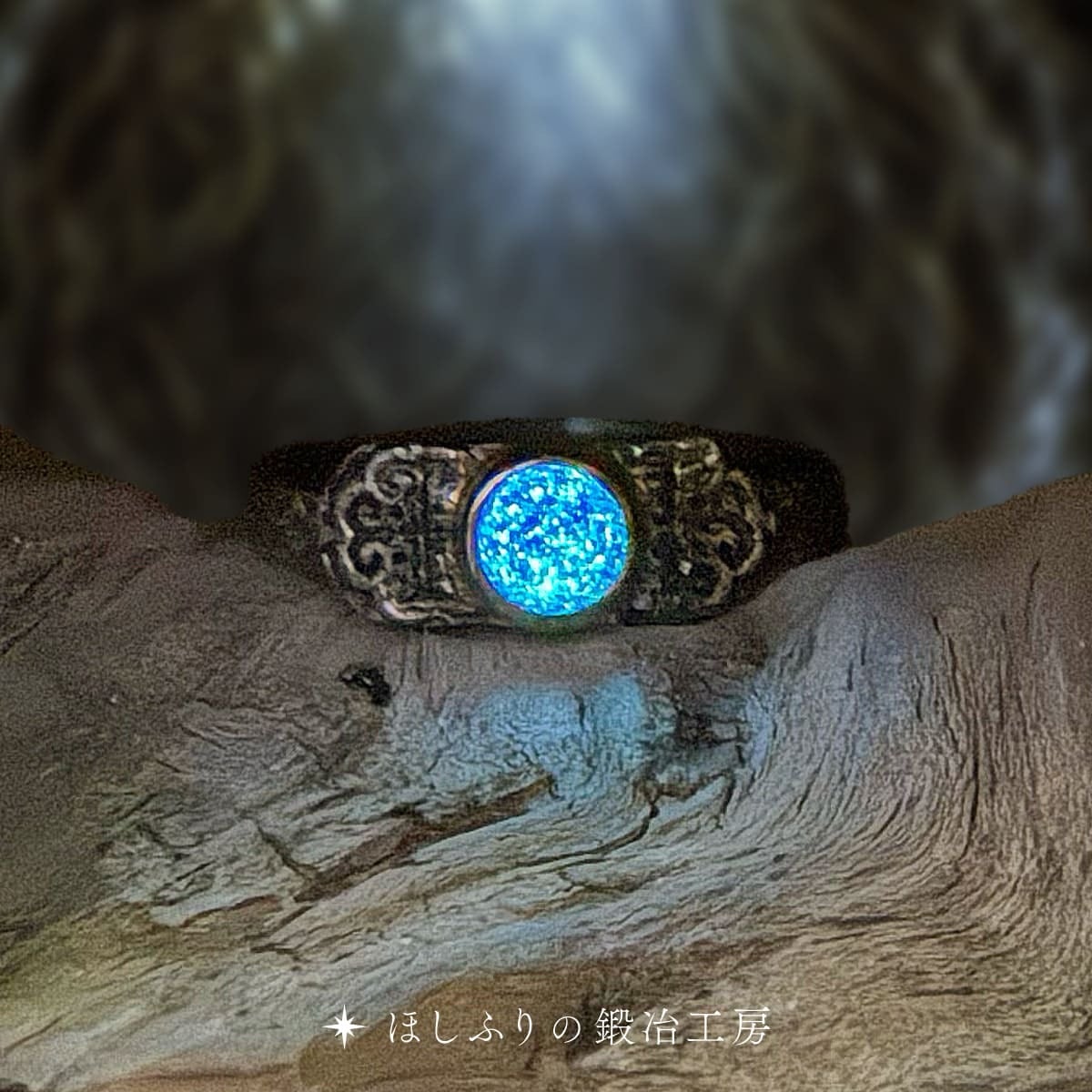 鍛え上げられた直後の指輪は、銀の表面が黒く沈み、古代遺物のような哀愁をまとう。